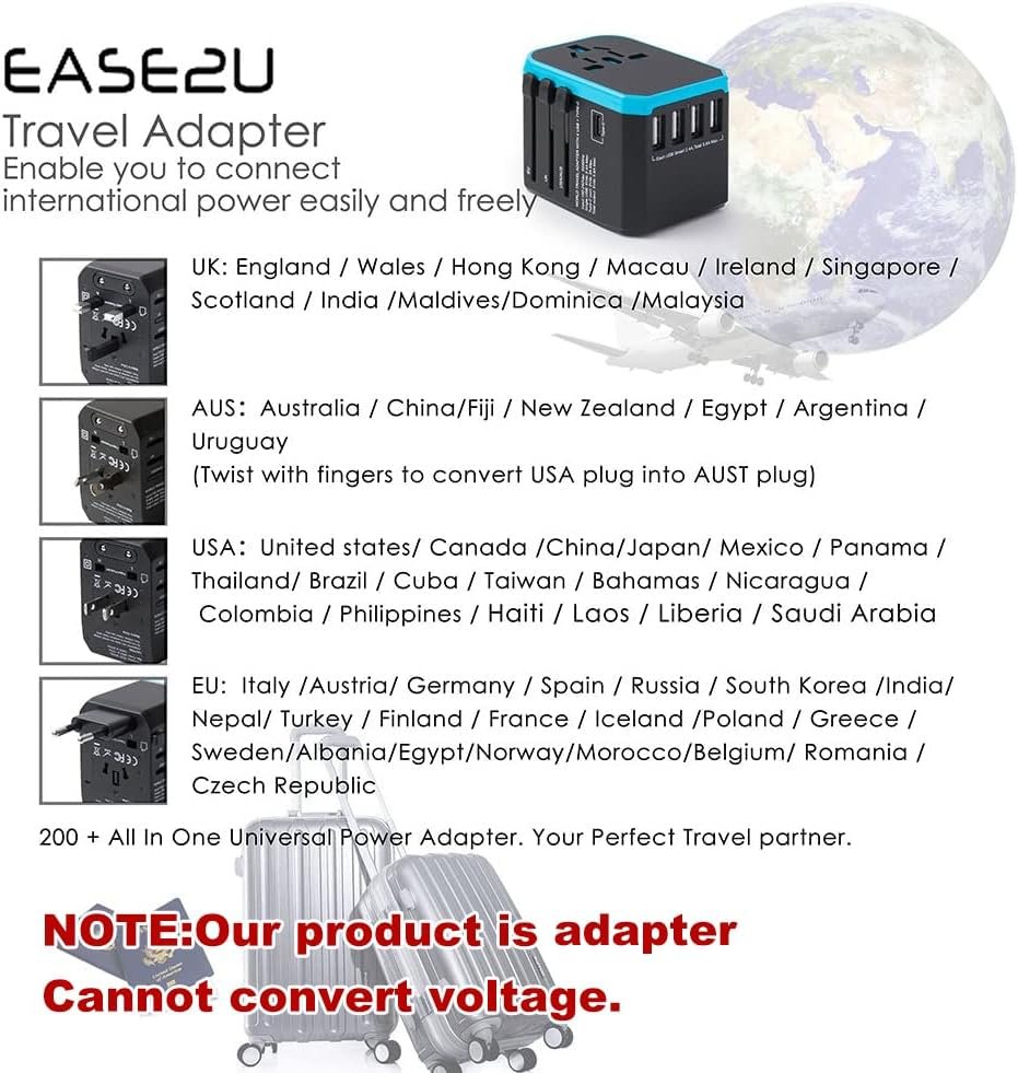 【Worldwide Travel Companion】:Eeas2U Best Compact Worldwide travel adapter High Speed charger worked in over 200 countries Italy Israel Thailand Australia Switzerland Spain China Canada Mexico Brazil Central America South America Ireland Zealand Korea Japan HongKong Philippines Asia the Middle East etc.