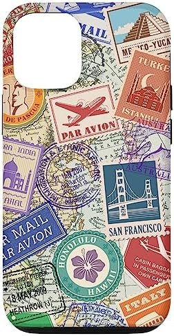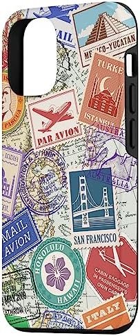 iPhone 14 World Map Travel Passport Stamps Postage Stamp Case