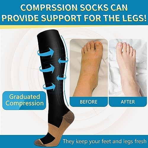Iseasoo 3 Pairs Copper Compression Socks for Women&Men Circulation-Best for Runn…