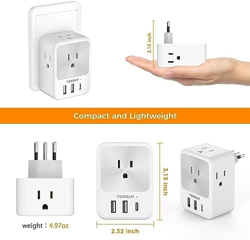 Italy Travel Plug Adapter, TESSAN Italy Power Adapter with 4 Outlets 3 USB (1 US…
