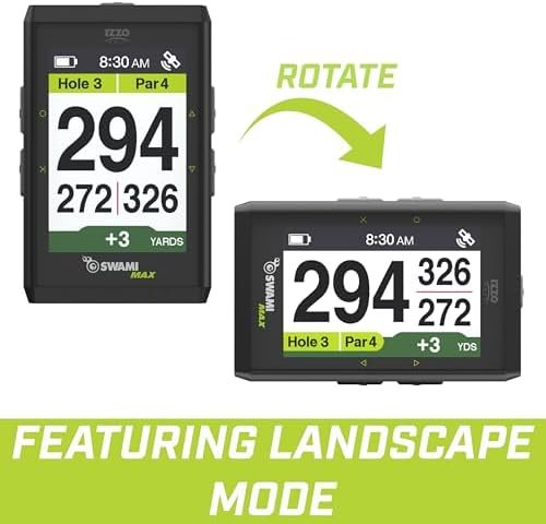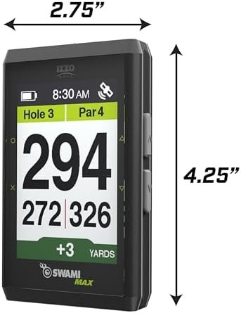 The Izzo Swami Max Golf GPS features a unique extra-large, 3.5 inch LCD color display that can be oriented vertically or horizontally to satisfy your visual preference. The Swami MAX comes preloaded out of the box with 38,000 global course maps with no subscription or update fees. The Swami MAX GPS will auto-recognize your course at start-up and provides accurate distances to the Front, Center and Back of the green, as well as layup and carry distances to hazards and downlegs. Other useful features include auto-hole advance, shot distance measurement and a digital scorecard, and the display can be adjusted to only show the Green Center distance in a larger font. The MAX also comes equipped with a strong, integrated magnet allowing you to affix the GPS to the cart frame for ultra-convenient, hands-free access during your round. This device includes a rechargeable lithium ion battery that lasts up to 16 hours on a full charge.