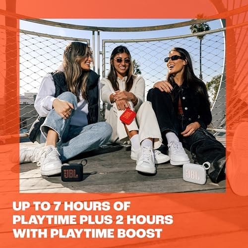 Up to 7 hours of playtime plus 2 hours with Playtime Boost: Don’t sweat the small stuff like charging your battery. JBL Go 4 gives you up to 7 hours of playtime on a single charge. Tap Playtime Boost to add up to 2 more hours to your battery life.