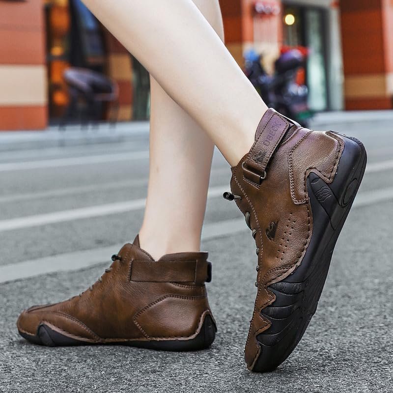Leather Material: Made of top-graded first-layer leather materialResistance & Durable: Firm flexible and comfortable wear resistance comfortable for walkingEasy to wear: Velcro and strap design for easy wearingLace-up Design: Stylish and easily adjustable for comfort