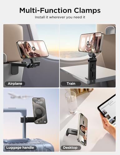 【Magsafe Wherever You Want】This airplane phone holder has a foldable function and is compact enough to carry around. You can fit it into your backpack or suitcase. Wherever you are, you can mount it to car, table trays, luggage handles, desktops, beds, kitchen cabinets, shelves, chairs and more.