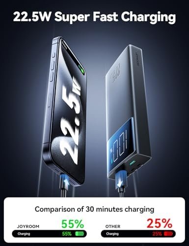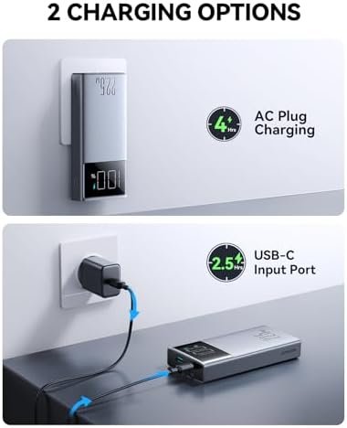 [Portable Charger with Built in Cables & AC Wall Plug] JOYROOM 10000 mAh portable charger has a wall plug and built in 3 types cables, so nothing else is needed to charge the phone or recharge the power bank. Power bank only needs 2.5 hours full recharge by USB-C input port, by AC wall plug full recharge is 4 hours