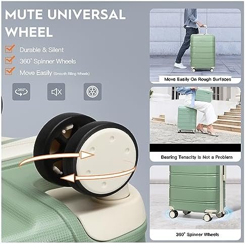 360°Double Spinner Wheels: Our luggage set has double wheels that rotate in multiple directions, making it very smooth and quiet when moving. Each suitcase has four molded side legs to provide stable side standing when the suitcase is stored. Easy-to-grip handles on top and sides and retractable (three-section) trolley metal rods. Our suitcase passed the drop test, the load-bearing test perfectly. To ensure that easy movement and comfort