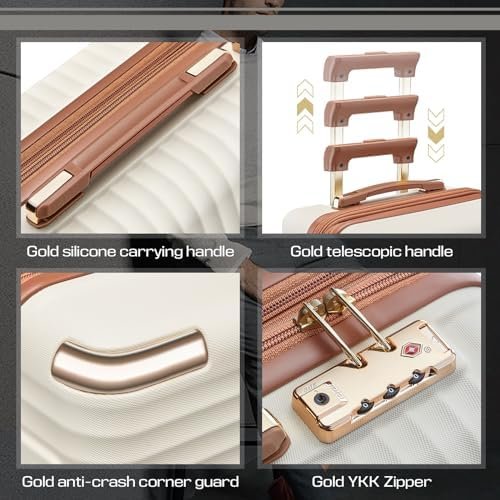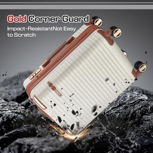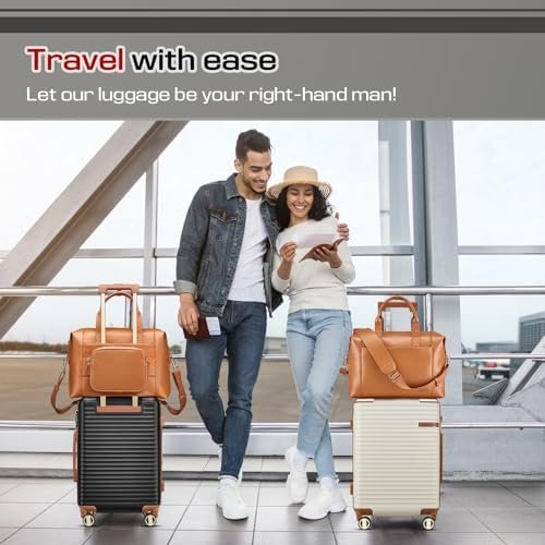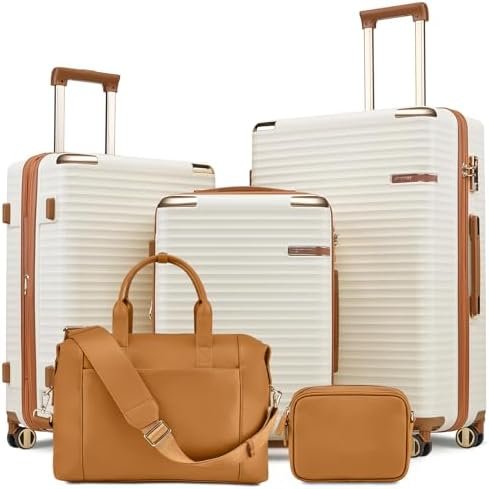 Luggage Set 5 Piece:This luggage set includes leather cosmetic bag, leather travel tote bag, 20 inch carry on luggage, 24 inch checked luggage, and 28 inch large luggage. It is designed to meet your various travel needs.In addition, the suitcase set is made of ABS material with a sturdy shell to ensure durability and long-lasting use.
