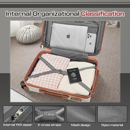Expandable 20% Capacity:The hard shell luggage set is equipped with expansion zippers, which can increase the capacity by 20%. Meanwhile, the interior of the travel luggage sets is equipped with zippered compartments and X-shaped cross straps, making it easy to sort and organize your belongings.