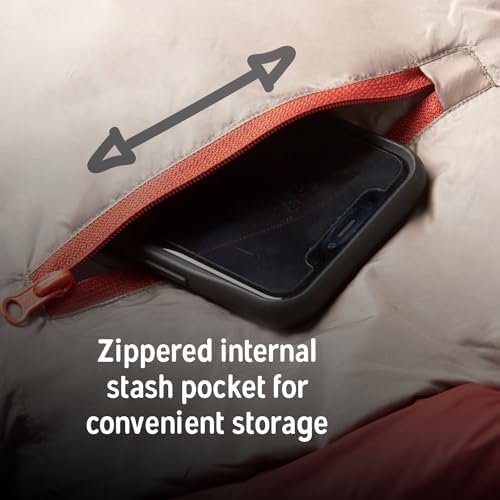 DUAL ZIPPERS: Two sliding, locking zippers with anti-snag draft tube – unzip from the bottom to stick a foot out and self-regulate heat while enjoying mummy-bag comfort. Zippered internal stash pocket for cell phone or headlamp
