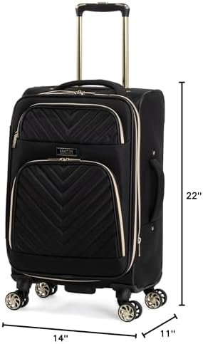 Finally, travel made trendy with the stylish polyester-twill chevron luggage from Kenneth Cole Reaction’s Chelsea luggage collection. Complete with a fully lined, tear-resistant interior, this luggage also expands an additional 2. 0 inches, ensuring that you have plenty of space for all your needed belongings. Its lightweight construction helps you meet airline weight restrictions to avoid unnecessary airport fees, while its 8-wheel spinners provide effortless 360-degree navigation allowing you to glide quickly through the airport. The main compartment interior features a hanging side zipper pocket and garment restraints to hold belongings in place. The under-the-lid section includes a mesh zipper pocket and a transparent, clear PEVA gusseted pocket for toiletries. The front exterior also features a small zipper pocket for easily accessible items and a large gusseted zipper pocket for additional storage organization. Padded top and side handles allow for easy maneuvering, and a bottom grab handle allows for easier lifting. Additionally, a retractable trolley handle extends to be 41 inches tall with a locking push button mechanism. Fashionable and functional, Chelsea luggage also boasts fashion-forward gold hardware with premium self-repairing coil zippers designed for long-lasting use. Carry-on size meets most U. S. based airline carry-on size requirements and fits into most airline overhead bin compartments. Backed by a manufacturer 10-year limited . ★ Overall Dimensions: 22. 0” H” x 14. 0” L x 9. 0”-11. 0” D. ★ Packing Dimensions: 20. 0” H x 13. 5” L x 8. 5”-10. 5” D. ★ Weight: 6. 35 lbs. ★