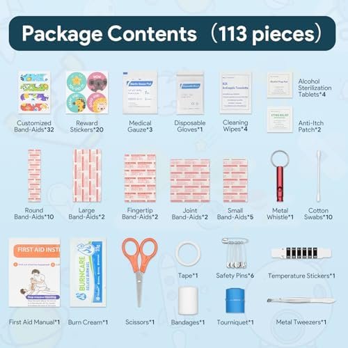 All You Need: KakuKa Mini First Aid Kit for Kids contains 113 essential first aid items that can be used in a variety of emergencies to keep you and your child safe and secure