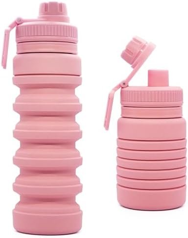 kidsme Folding Water Bottle Reusable Silicone Pink Water Bottle for Travel Sport…