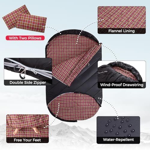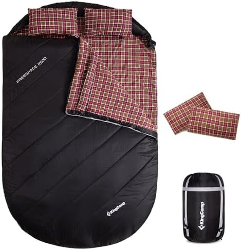 KingCamp Double Sleeping Bag with Pillows for Couples & Family, Queen Size Flann…
