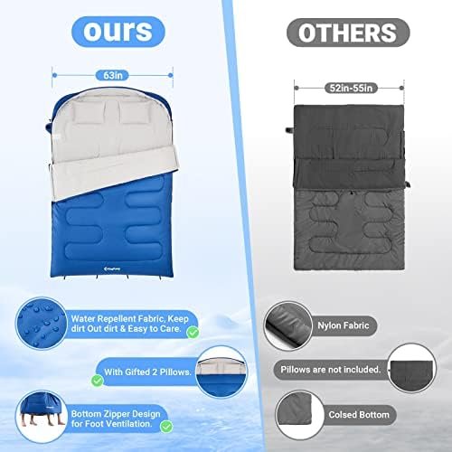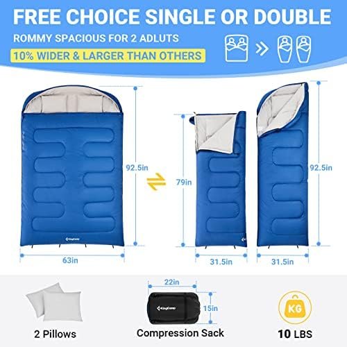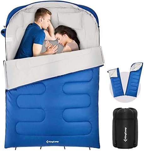 KingCamp Double Sleeping Bags for Adults, XL Big and Tall Sleeping Bag with 2 Pi…
