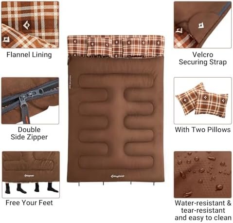KingCamp Queen Size 2 Person Double Sleeping Bags with Pillows for Adults, 20 De…