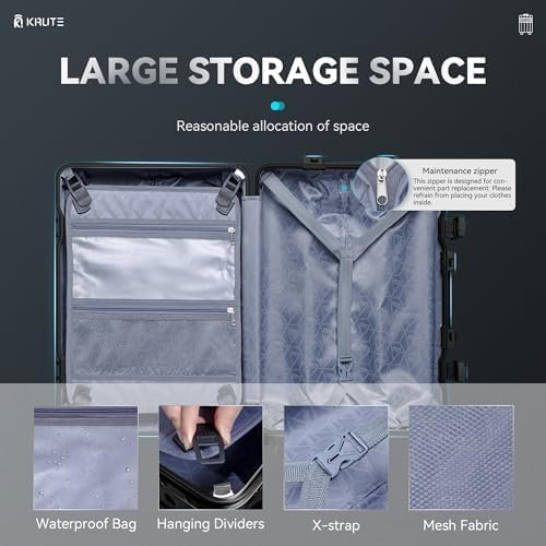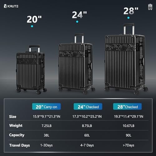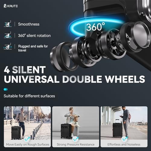 Krute Carry On Luggage with Aluminum Frame Zipperless Luggage with 8 Wheels 20in…