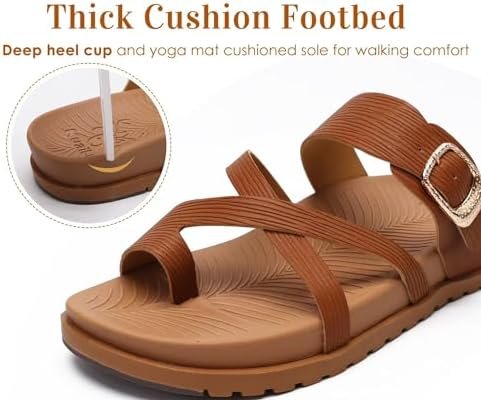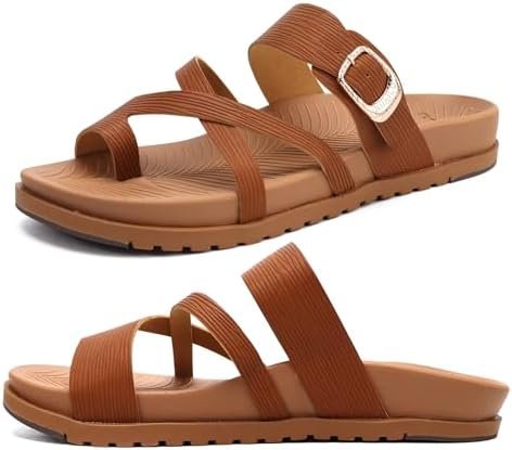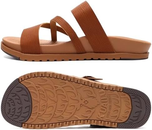 KuaiLu Womens Orthotic Slides Fashion Strappy Flat Sandals With Comfortable Plan…