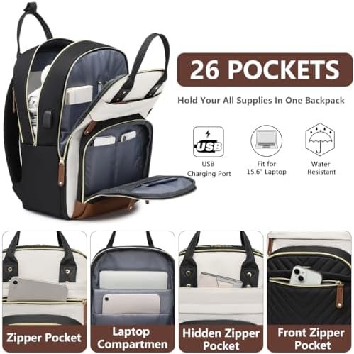 Laptop Backpack for Women Bag – 15.6 inch Work Travel Backpack with USB Charger …