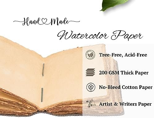 Handcrafted Paper: 200 pages of thick, handmade cotton paper, suitable for all pens and paints. Acid-free, smooth, and no-bleed, perfect for writing, sketching, Watercolors, doodle, and painting, enhancing the creative process for artists and writers.