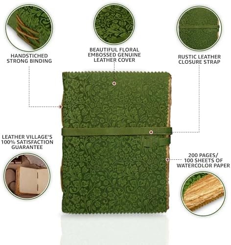 LEATHER VILLAGE Leather Bound Floral Embossed Journal for Women Men – 200 Pages,…