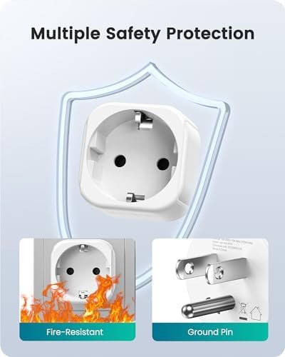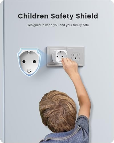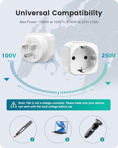 Compact Design – The Europe to US travel plug allows you to connect devices reliably and simply, just plug the adapter between the wall outlet and your device. This travel adapter is extremely compact and hardly protrudes from wall outlets.