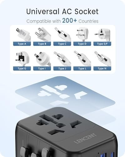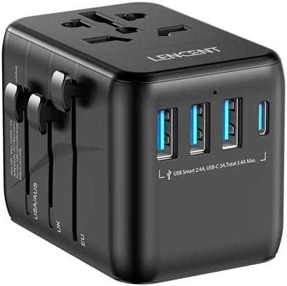 LENCENT Universal Travel Adapter, International Charger 3 USB Ports & Type-C Cha…