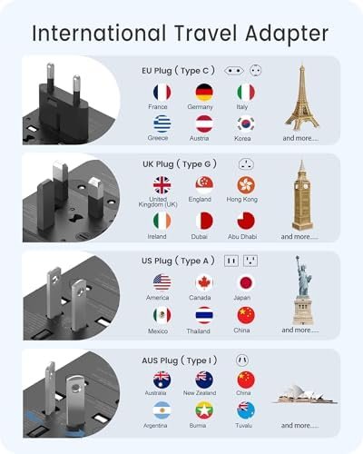 【Universal Travel Plug Adapter】 LENCENT all-in-one travel adapter with 4 interchangeable plugs covers over 200 countries: UK, Ireland, London, England, Scotland, Dubai, HongKong (Type G); France, Germany, Italy, Spain, Iceland, Greece, Israel (Type C ); China, Australia, New Zealand (Type I); USA, Japan, Canada (Type A). More country list can be checked in description. Suitable for your worldwide travelling.