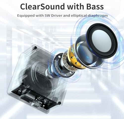 Brief and fashion Design:The small speaker is a good gift Choice for Birthday/Mothers’day/Fathers’day,Children’s Day and Christmas day.it is little and exquisite,features a stylish transparent body with loudspeaker in front, bass raditor in the back,and high-quality components inside of the portable speaker can be seen clearly, shedding elegant and pretty temperament.