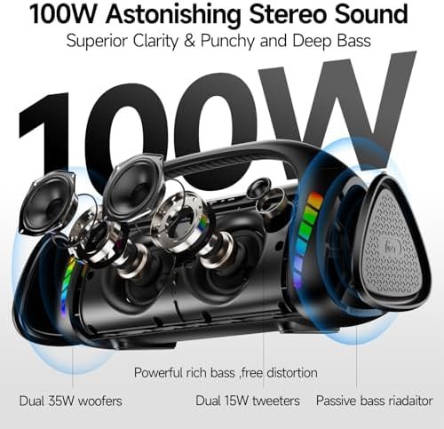 LFS Bluetooth Speaker,100W Loud Speakers Bluetooth Wireless with Deep Bass, Port…