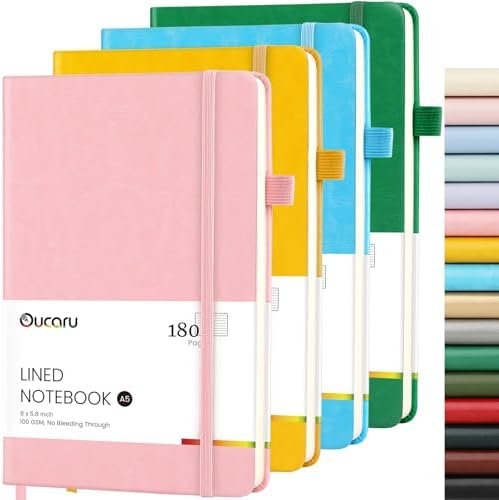 Lined Journal Notebook, 4 Pack, 180 Pages, A5 Journals for Writing, 100 GSM Thic…