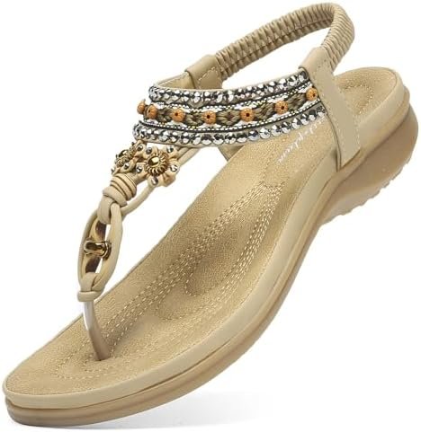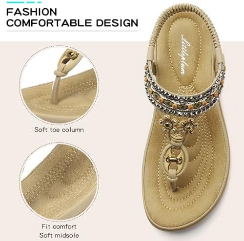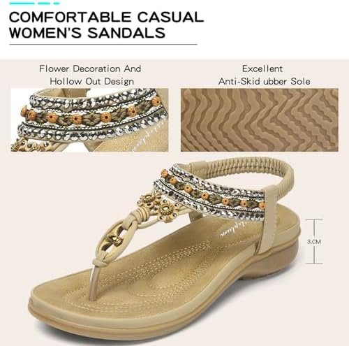 The womens sandals with boho appliques flower rhinestone make it more distinctive. Dressy summer flat sandals are cute and practical for many outfits. Whether you want a sandal for dating, shopping, party, office, street, vocation, this is essential for you.