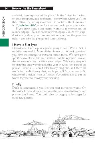 Survival phrases inside front cover for at-a-glance, on-the-fly cues