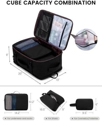 【3 Packing Cubes】Comes with 3 cubes for organized storage of sweaters, jackets, pants, shirts, shoes and toiletries. Crafted from water-resistant polyester, it protects your belongings in various weather conditions.