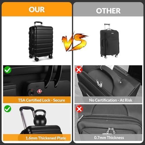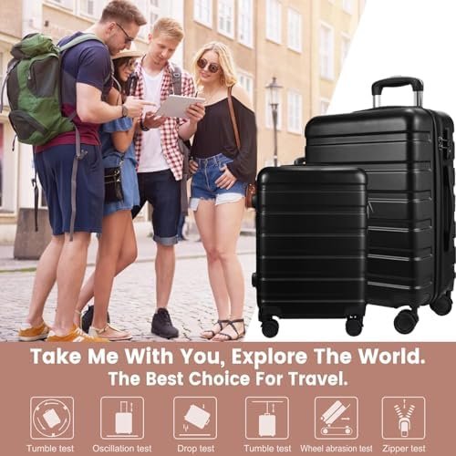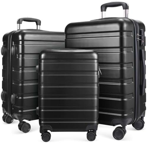 Luggage 3-Piece Set Suitcase Spinner Hardshell Lightweight TSA Lock, Black, 20″,…