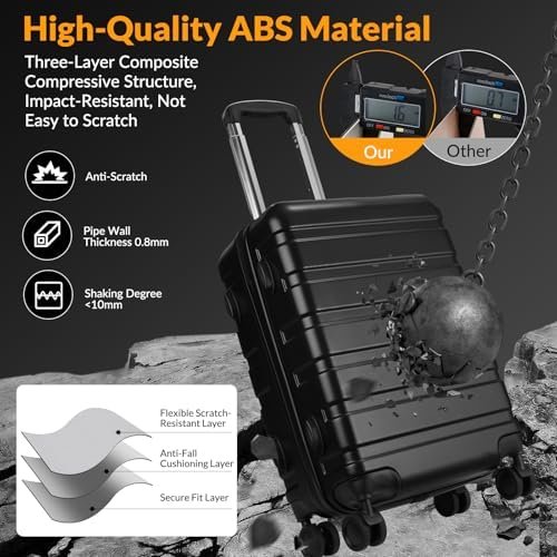 Durable and scratch-resistant: Made of high-quality ABS+PC material, the luggage is sturdy and scratch-resistant, ensuring that it can withstand the rigors of travel.