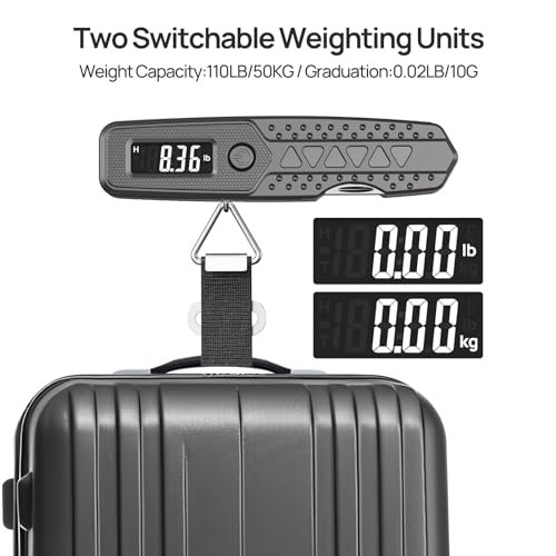 【Extreme Precision Scale】: Our weight luggage scale uses high-precision sensors, with a minimum accuracy of 0.02Lb and a maximum weighing of 110Lb. It has intelligent tare and locked weight, and automatically shuts down to save power