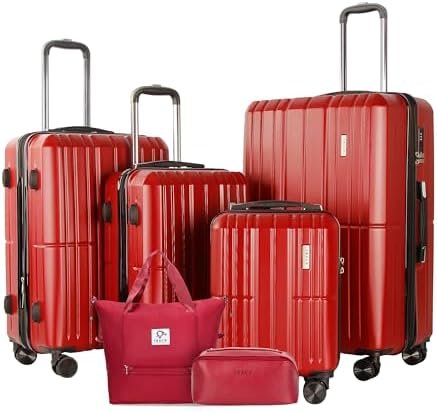 Capacity: The affordable luggage sets include 16” underseat carry-on luggage, 20″ carry on luggage, 24″ checked luggage, 28″ large luggage, a weekender travel bag and a toiletry or makeup bag. Stylishly designed to make travel effortless. For even more versatility 24, 28 inches of luggage has an expandable design of up to 20%. 16in28L, 20in38L, 24in60L, and 28in93L.