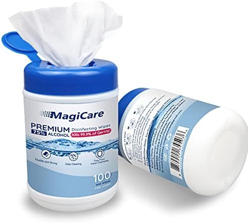 MagiCare 75% Alcohol Hand Sanitizing Wipes (2 Canisters) – Large Alcohol Wipes, …