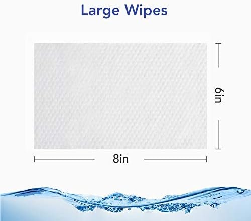 Larger Size + More Moisture: Our 6″ x 8″ alcohol sanitizing wipes are bigger than most other wet wipes for hands on the market. They also have higher moisture retention with their 45g weight and spunlaced non-woven material.