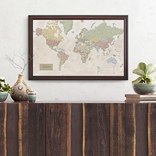 Map Your Travels Deluxe Push Pin World Map | Premium Wood Frame | Personalized G…