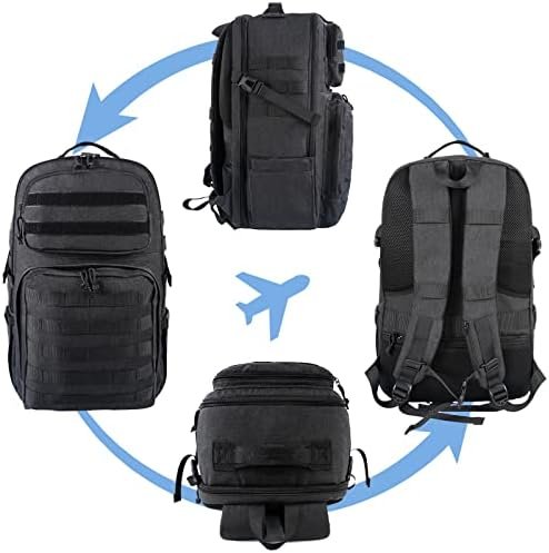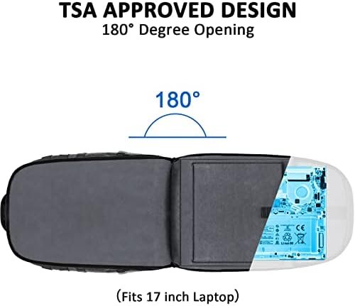Large and Multiple Compartments: This laptop backpack for men featuring TSA laptop compartment fits under 17 inch laptop, and it can be laid flat at 180 degrees that get through security quickly. With a roomy main storage area, sunglass compartment, side bottle pocket, front organizer pocket and a quick access compartment. 32 L Large capacity, organized and airline approved size (19.5″ x 12.5″ x 8″) make it useful as a travel backpack