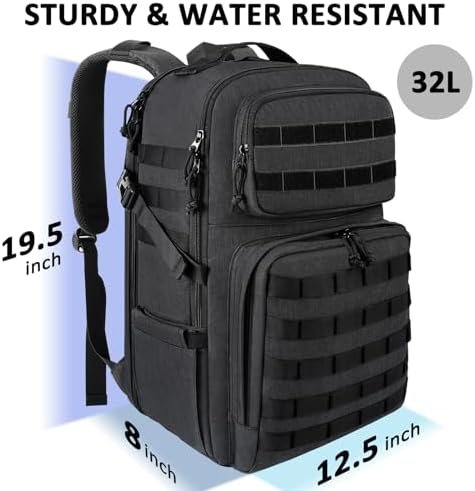 Molle Design Style: Molle backpack’s front and both sides come with Molle webbing, throughout for attaching additional pouches, hooks or other small gadgets. Molle system has been essential for first responders, patrol, soldiers, public service workers. It can be used as outdoor backpack or hiking backpack, etc
