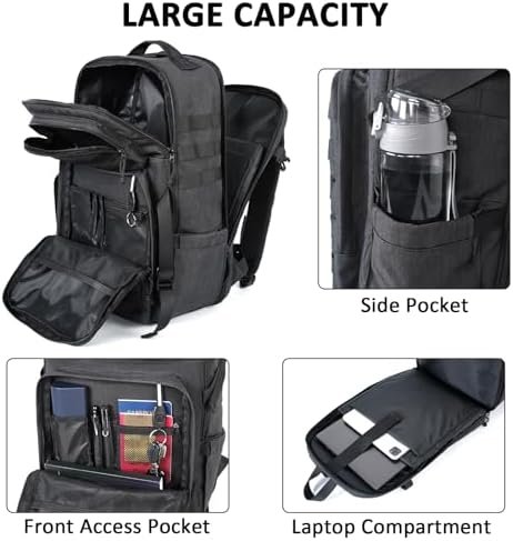 Comfortable: Large travel backpack for men equipped with an adjustable chest strap, air mesh breathable back panel and thickened shoulder straps. It can effectively relieve the pressure on the shoulder and neck, ensure optimum comfort for hours of carrying. An anti theft back pocket is suitable for valuables. Side compression straps help to tamp down a half full bag to eliminate excess space. Compressing a pack closer to your body, and a more comfortable overall carrying experience