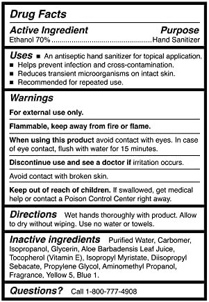 Gel hand sanitizer is formulated with 70% ethanol and aloe to keep hands clean, soft, and moisturized