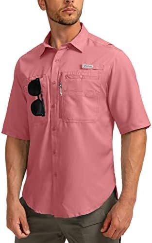 Men’s Fishing Shirts with Zipper Pockets UPF 50+ Lightweight Cool Short Sleeve B…