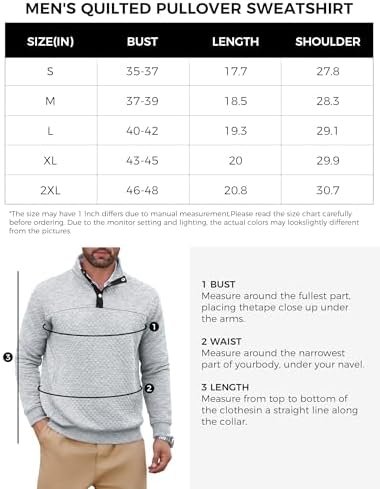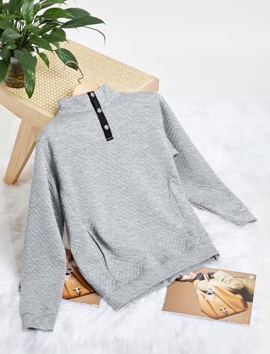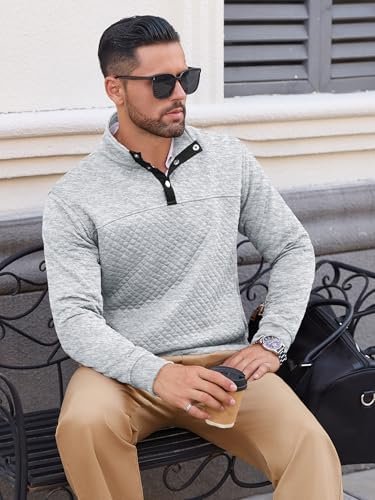 Men’s Quilted Pullover Sweatshirt Long Sleeve Stand Collar Button Casual Pullove…