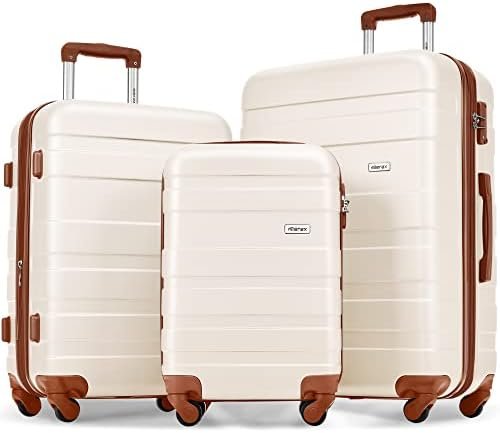 Merax 3 Pcs ABS Hardside Luggage Sets TSA Lock Spinner Wheel Suitcases, Pearly W…