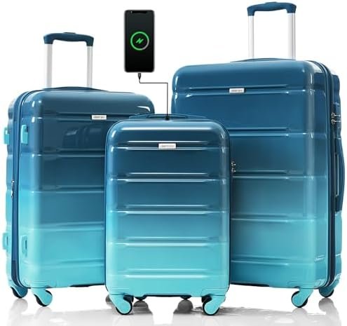 [3 Piece Luggage set] The 20″ carry on suitcase features USB charging ports (Power bank not included), 24″, 28 “are expandable, adding 25% space capacity for hardshell luggage. Each set is shipped with each suitcase inside one another to save space for your convenience.