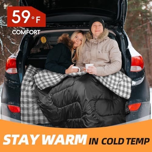 IDEAL FOR KEEP WARM: Our double sleeping bags are designed to give you a good night’s sleep. Optimal comfort temperature is 59°F. The rating you choose will depend on where you’ll be using it and what temperature you are comfortable sleeping in. For a comfortable night’s sleep consider the lowest outdoor temperature you’ll be sleeping in and ensure that temperature falls within the comfort range
