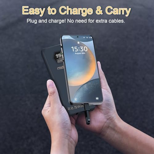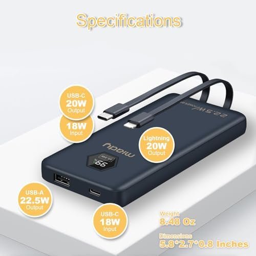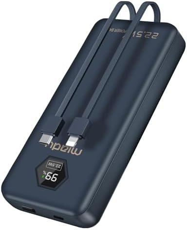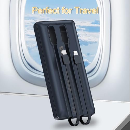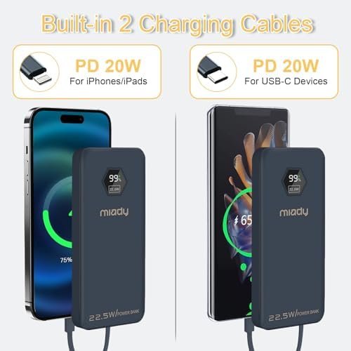 22.5W Fast Efficient Charging: Portable phone charger has 2*built-in cables (iOS, Type-C), 2*Charging ports (USB-A, Type-C), and come with 1* USB-C to USB-C cable. Especially Type-C cable output supports 22.5W max fast charging, it ensures your devices get juiced up quickly. 4-in-1 portable charger, you would not need to carry various cables or adapters any more! With digital LED display feature, easier for you to know the exact power of the charging bank.